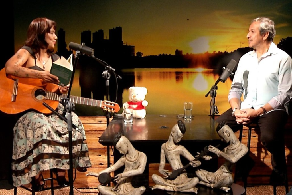 Durante a conversa, a convidada relembra momentos marcantes da carreira, fala sobre suas influências e reforça a importância da preservação das tradições regionais por meio da arte.