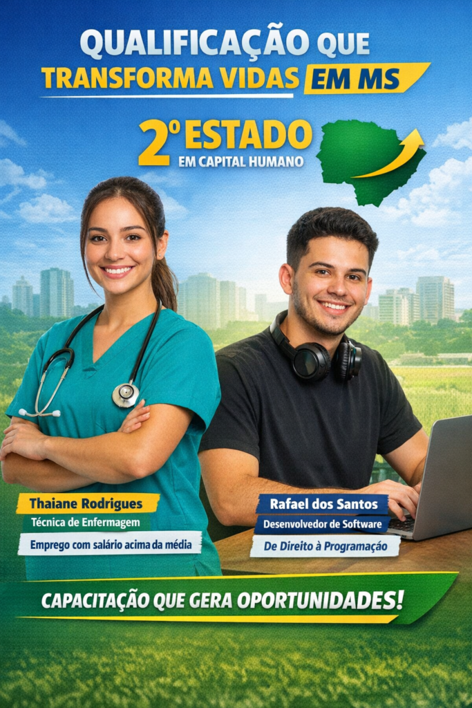 A qualificação profissional tem sido um dos principais motores do desenvolvimento econômico de Mato Grosso do Sul, que atualmente ocupa a 2ª posição no ranking nacional de capital humano. O resultado reflete os investimentos contínuos em educação técnica e programas de capacitação voltados à inserção rápida no mercado de trabalho.