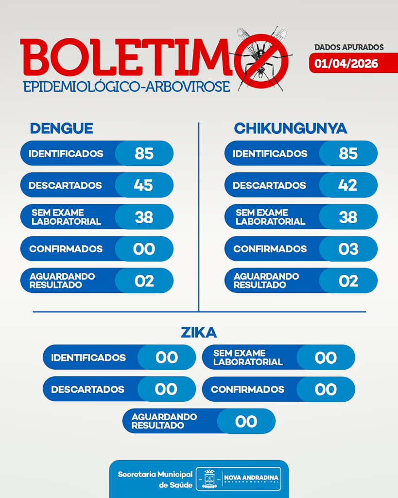 A Secretaria Municipal de Saúde confirmou o registro de três casos de chikungunya em Nova