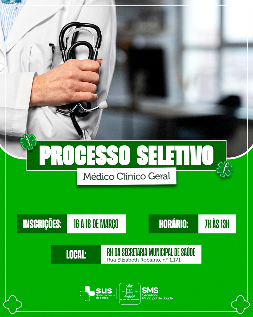 Processo seletivo abre vaga para médico clínico geral na rede municipal de saúde