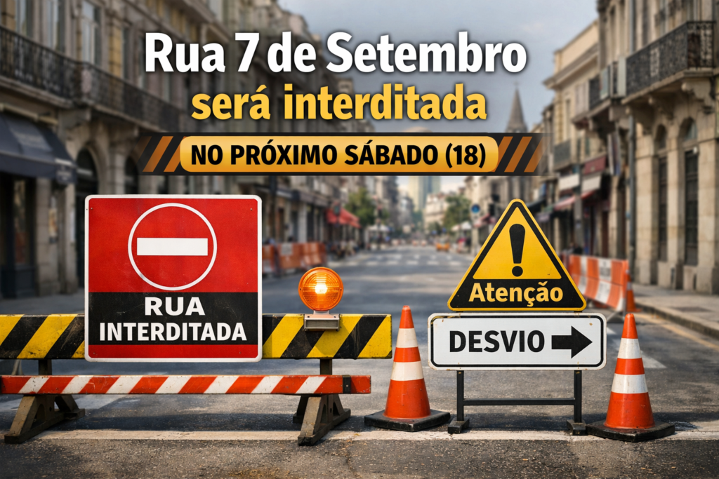 interdição temporária da Rua 7 de Setembro no próximo sábado (18), como parte das ações de