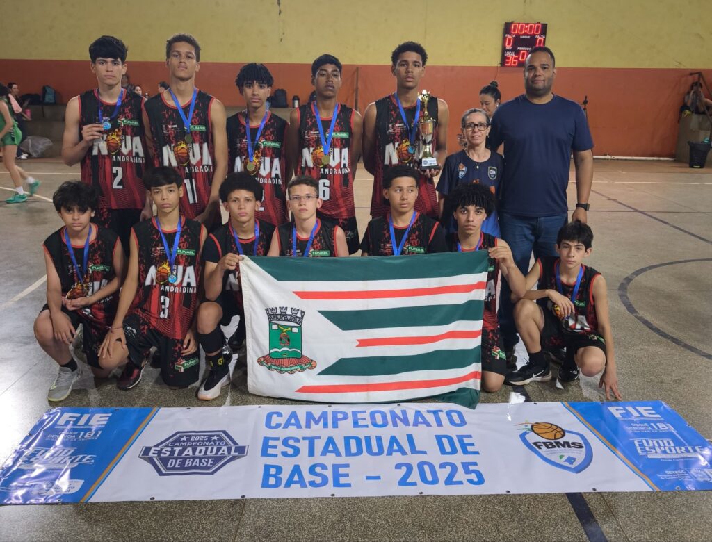 A equipe Sub-14 masculina de basquetebol da Fundação Nova-andradinense de Esporte e Lazer (Funael) fez bonito nas finais do Campeonato Estadual de Basquetebol de Base 2025, realizadas entre os dias 11 e 14 de outubro, na cidade de Rio Brilhante. O evento foi promovido pela Federação de Basketball de Mato Grosso do Sul (FBMS), com apoio da Fundesporte e da Prefeitura de Rio Brilhante, por meio da Funcerb.