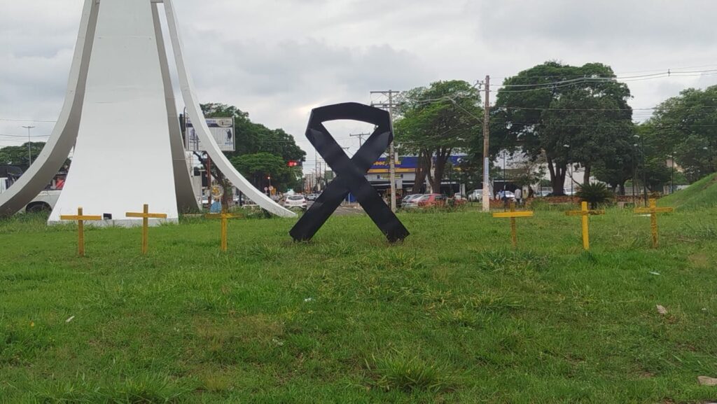 Nova Andradina realizou, nesta sexta-feira (14), uma cerimônia pública em homenagem às seis vítimas fatais de sinistros de trânsito registradas no município ao longo deste ano. A atividade ocorreu no obelisco central da cidade, onde foram instaladas cruzes representando cada vida perdida e um laço preto em referência ao luto coletivo. O ato teve como objetivo promover conscientização sobre a segurança viária e alertar a população para a importância da prevenção.