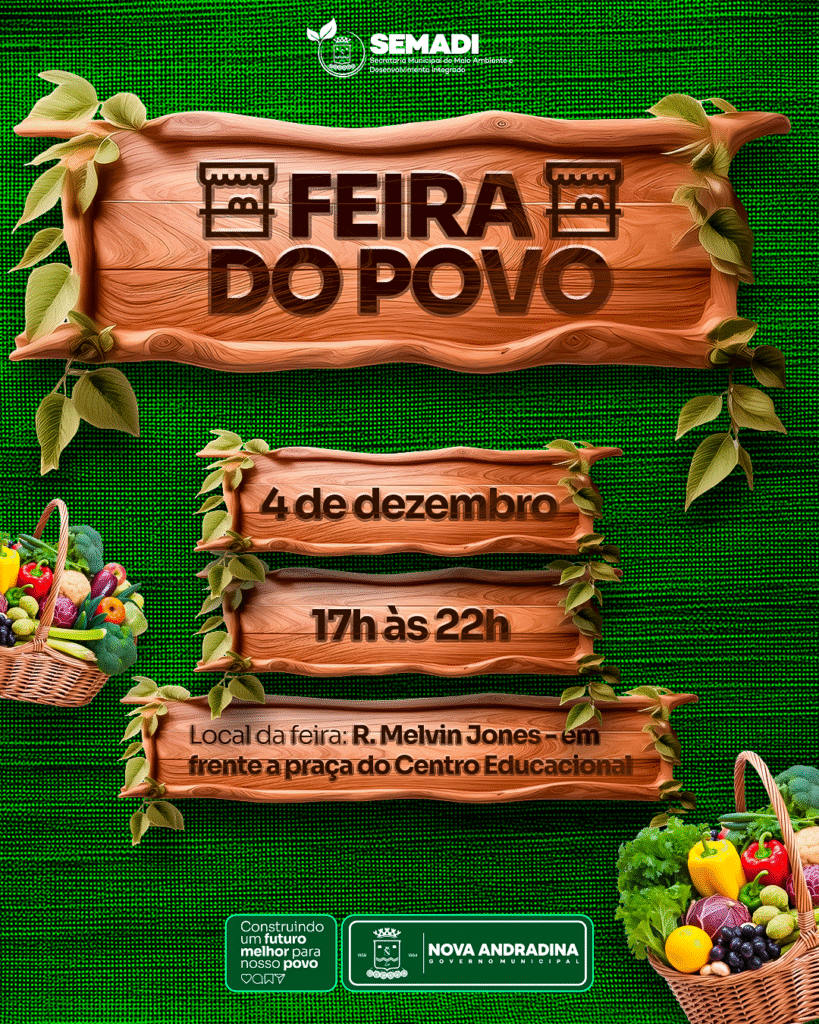 A Feira do Povo é organizada pela Prefeitura de Nova Andradina, por meio da Secretaria de Meio Ambiente e Desenvolvimento Integrado (Semadi), reforçando o compromisso da gestão em fomentar o comércio, incentivar a economia sustentável e abrir novos espaços para que pequenos empreendedores possam prosperar.