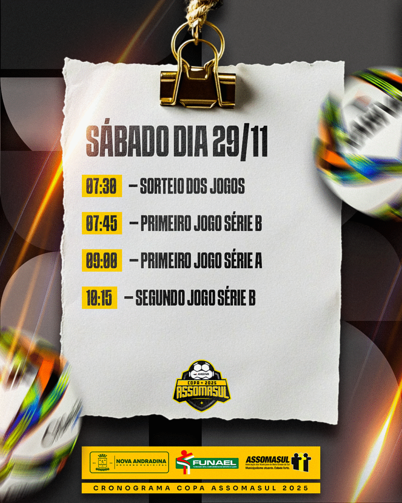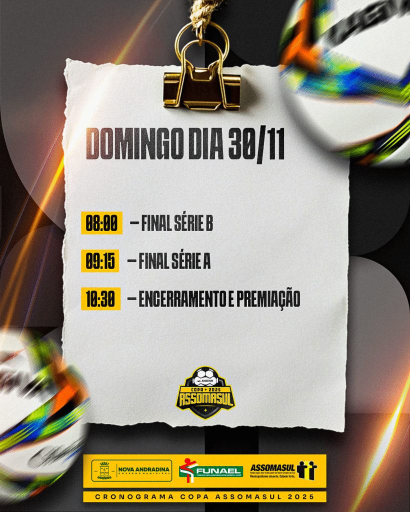 A contagem regressiva começou, e Nova Andradina se prepara para viver um dos momentos mais marcantes de sua história esportiva. Nos dias 29 e 30 de novembro, o município sediará as finais da 21ª edição da Copa Assomasul de Futebol, atraindo a atenção de atletas, torcedores e toda a comunidade.