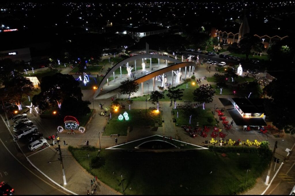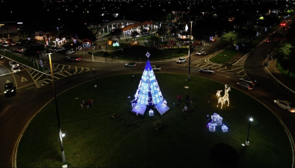 O Natal de 2025 em Nova Andradina marca um novo patamar em decoração e celebração. Com um projeto moderno, robusto e visualmente impactante, a Prefeitura Municipal entregou à população a maior e mais imponente estrutura natalina já instalada no município. A Praça Brasil e o obelisco se tornaram verdadeiros cartões-postais iluminados, refletindo o compromisso da administração municipal com inovação, cultura e o bem-estar da população.