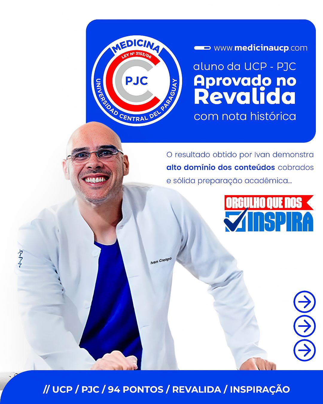 Desempenho histórico reforça a excelência acadêmica da Universidad Central del Paraguay, referência em formação médica na fronteira O estudante Ivan Crespo, da Universidade Central do Paraguay (UCP), alcançou um resultado de destaque ao ser aprovado na 1ª fase do Exame Nacional de Revalidação de Diplomas Médicos (Revalida) com 94 pontos. O desempenho pode ser o […]